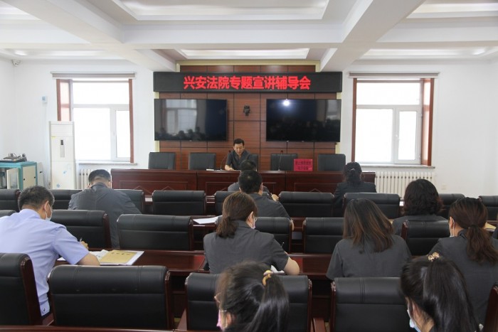 7月2日下午,兴安法院组织召开了院长专题宣讲辅导会。我院党组书记、院长戚晏榕围绕坚持党对司法工作的领导这一主题,为全院干警进行了专题宣讲辅导,推动法院专题教育走深走实。