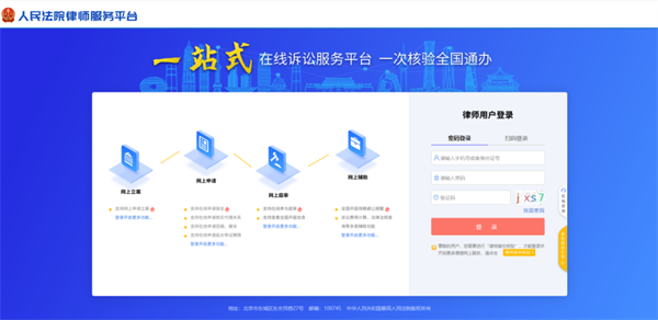 当事人可通过登录“人民法院律师服务平台”(http://lspt.court.gov.cn) 完成“律师身份认证”,在确认授权后,系统将引导进入法院律师服务平台,即可进行网上立案。