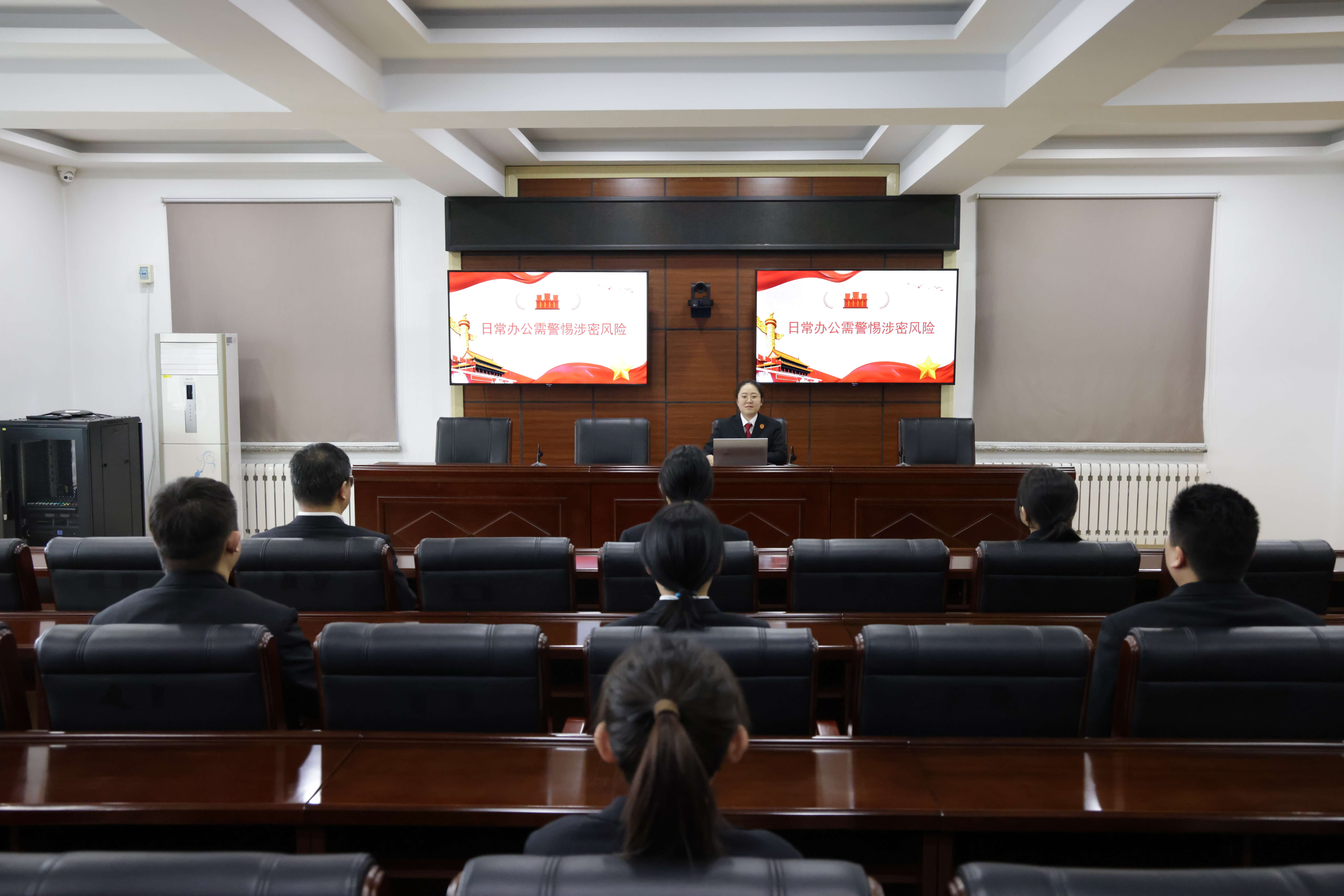 为强化全院干警保密意识,防范失泄密风险,2月5日,兴安区人民法院开展保密工作专题培训会,综合办公室一级科员李婉玉以“日常办公需警惕涉密风险”为题为全体干警授课。